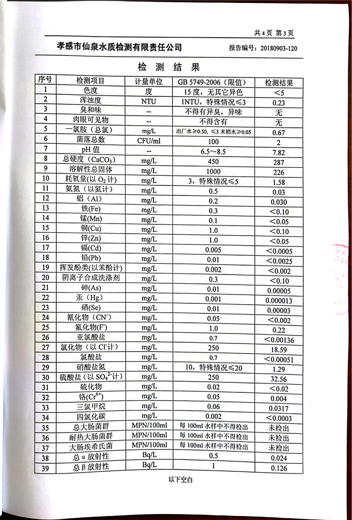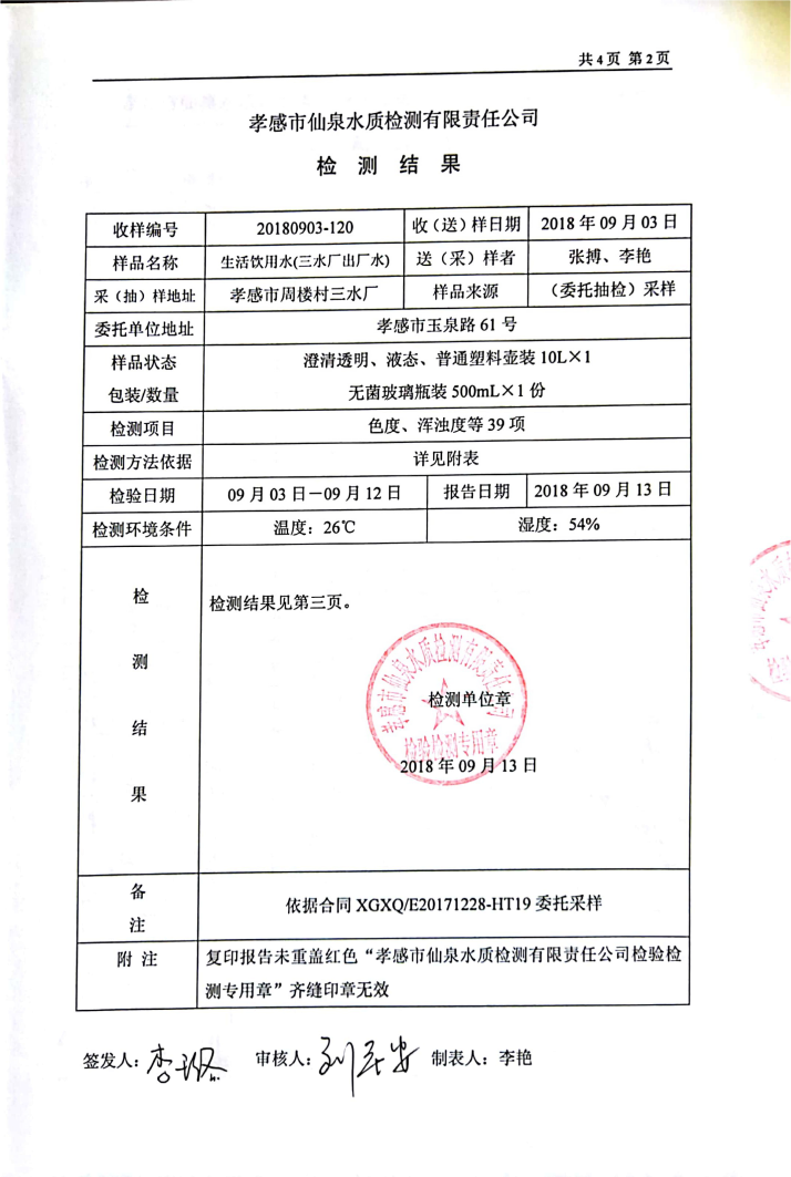 2018年9月水質(zhì)報(bào)告